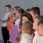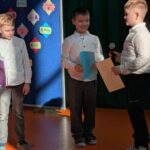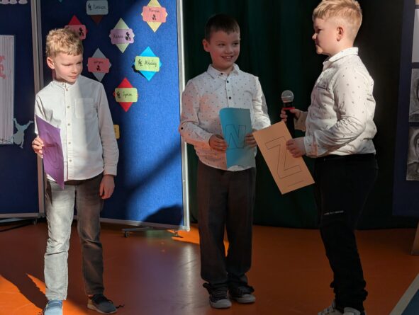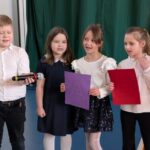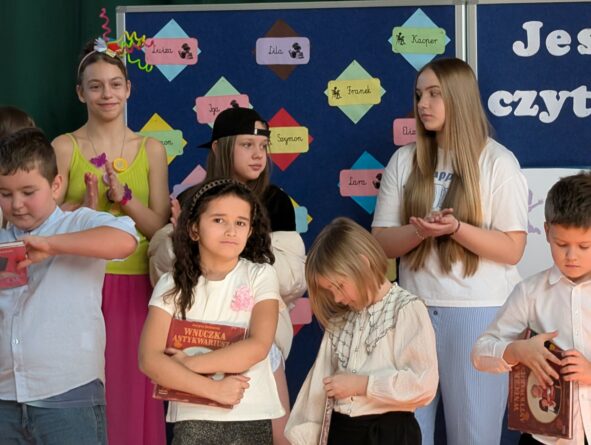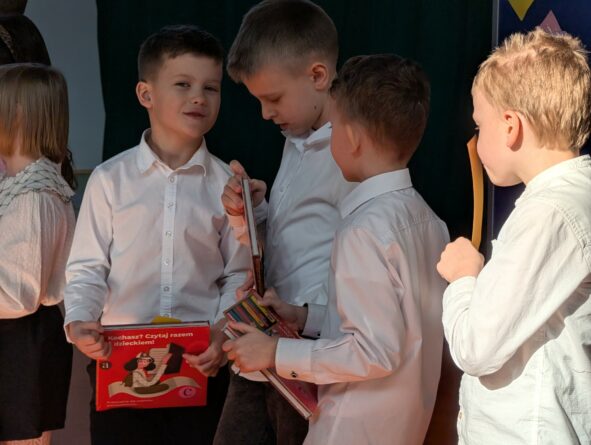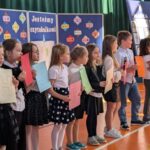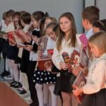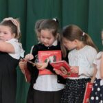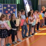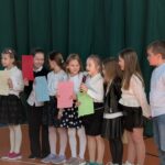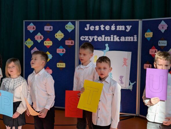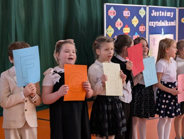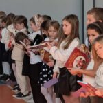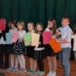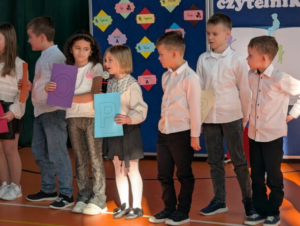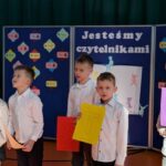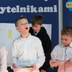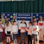 Na zakończenie pierwszoklasiści zostali zaproszeni na scenę, gdzie zaśpiewali piosenkę oraz w formie wiersza zaprezentowali znajomość alfabetu i orientację w zasobach biblioteki. Na znak przyjęcia do grona czytelników otrzymali pamiątkowe książki i zakładki.