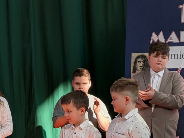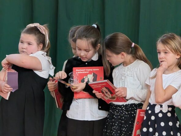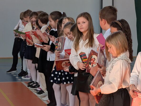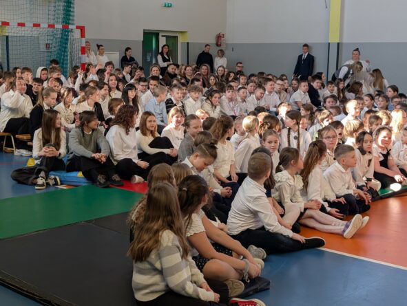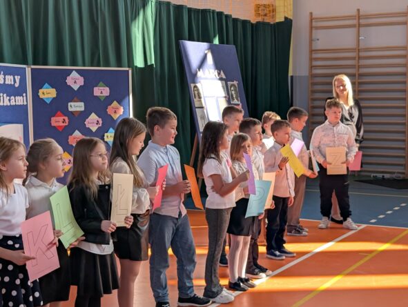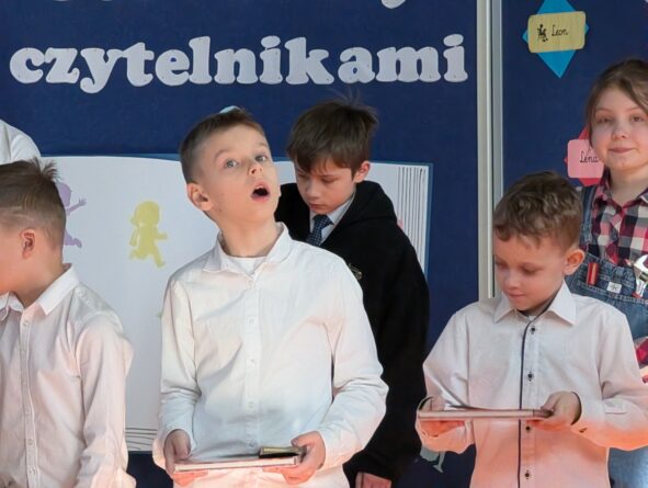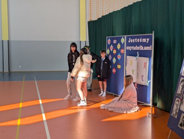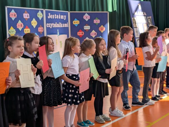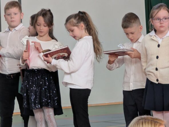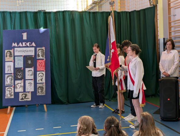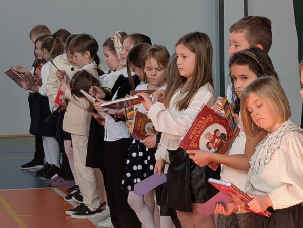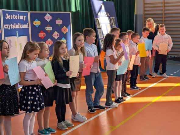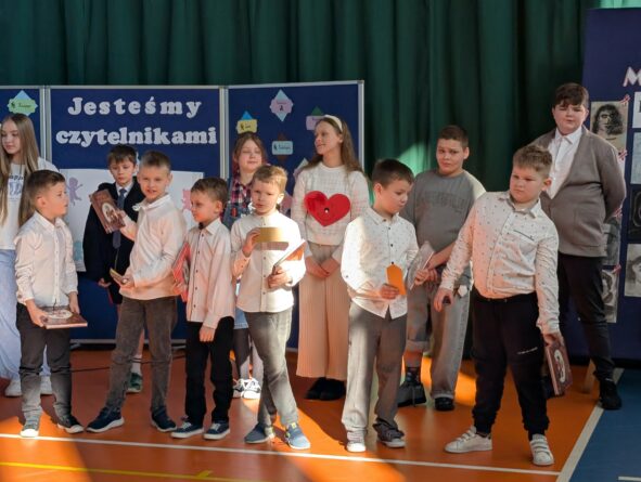 26 lutego 2026 r. w naszej szkole odbyła się uroczystość włączenia pierwszoklasistów do grona czytelników biblioteki szkolnej. Wydarzenie rozpoczęło się uroczystym wejściem sztandaru, odśpiewaniem hymnu narodowego oraz krótkim apelem. Minutą ciszy uczczono pamięć żołnierzy wyklętych, a Patryk z klasy 8B przybliżył zebranym, kim byli i dlaczego warto o nich pamiętać.